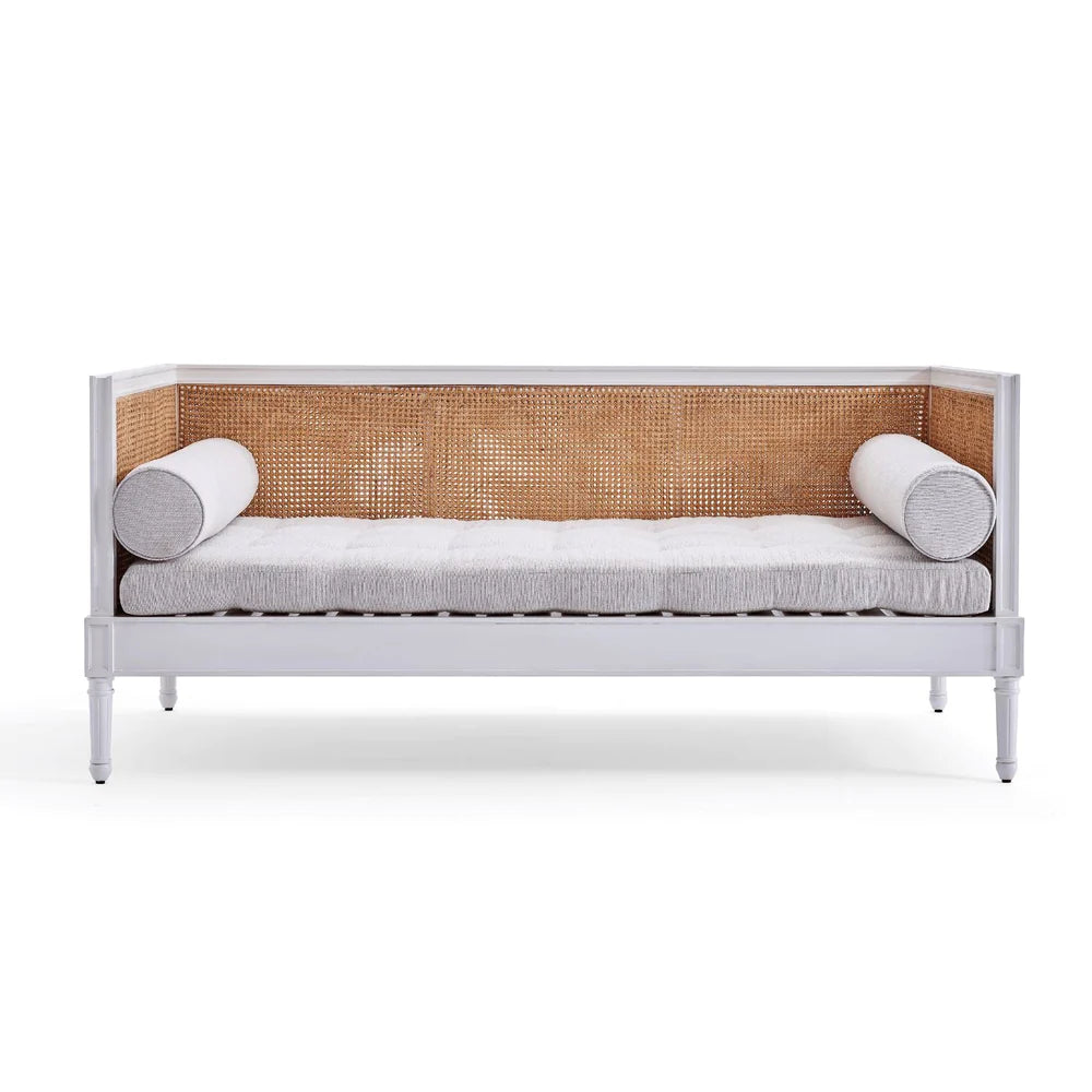The Harbor Cane Sofa Day Bed adds a serene, dreamy vibe to any room with its timeless design. Featuring an elegant silhouette and gentle brown rattan accents, it combines natural beauty with lasting style. The mango frame’s classic white finish complements the cozy, round pillows designed for ultimate comfort. Lightweight yet sturdy, this handcrafted piece is built from durable Acacia solid wood with a smooth duco white finish and natural rattan panels—making it a reliable and stylish addition to your home.
