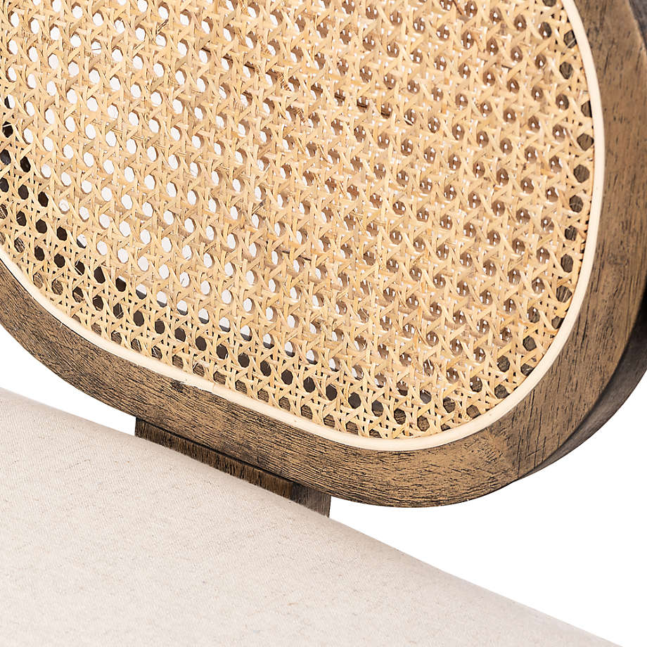 Woven Rattan Backrests: The backrests feature three elliptical rattan panels framed by wood, creating a unique and eye-catching pattern. The intricate weaving adds a handcrafted, artisanal quality while providing breathable support.