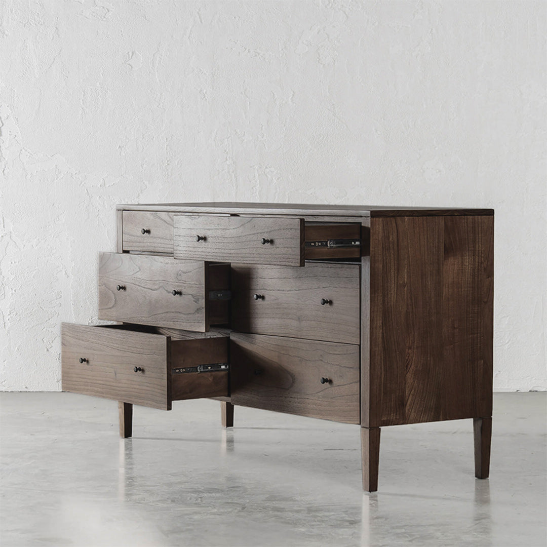 Introducing the Jaipur Solidwood Dresser, a beautifully crafted piece that embodies the essence of Scandinavian design with its natural wood finish, clean lines, and functional elegance. Designed for those who value simplicity and practicality, this sideboard features six spacious drawers, tapered legs, and a minimalist aesthetic. Whether you’re looking for a 6-drawer solid wood dresser for home or office, a modern wooden cabinet with drawers for storage, or a wooden sideboard for storage, this piece is a versatile and stylish addition to any space.